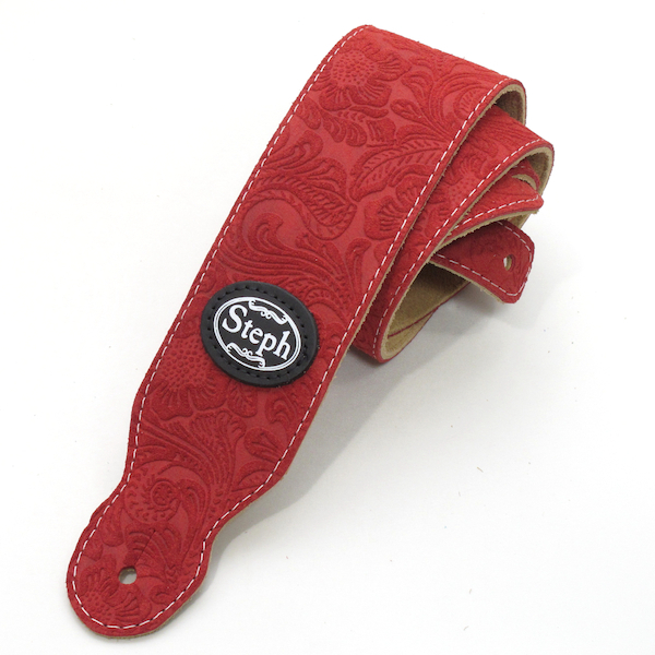 - 新品 ギターストラップ Steph BS-1029 スエード/レッド エンボス