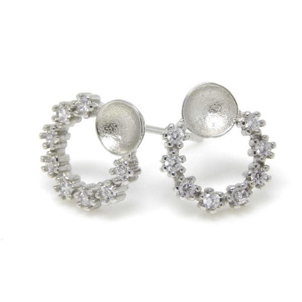 - 残り1点★新品★送料無料 丸型用 シルバー925 CZダイヤモンドピアス 石座 ジルコニア 1ペア ラウンド パーツ ハンドメイド 限定 素材
