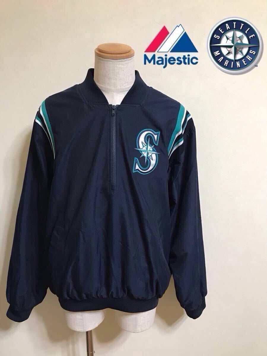 - 【良品】 MLB Seattle Mariners majestic Authentic collection メジャーリーグ シアトル マリナーズ ブルゾン ハーフジップ サイズL 長袖