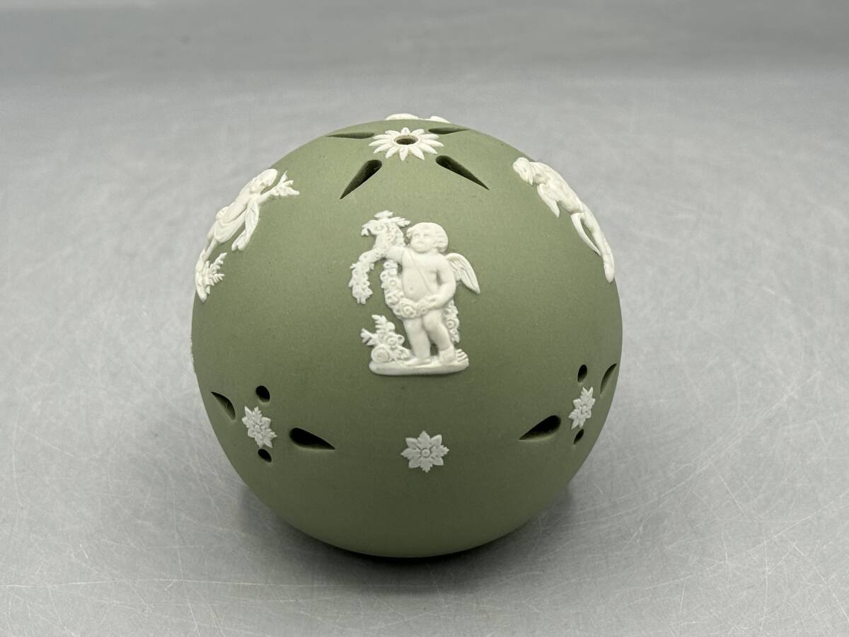 - 英国 ウェッジウッド ジャスパーウェア セージグリーン ポプリポット ボール (765)