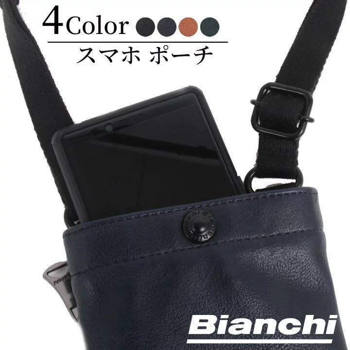 - エレガントフェイクレザー スマホ ポーチ LBPS16 肩掛け ショルダー ミニショルダー スマートフォン ビアンキ