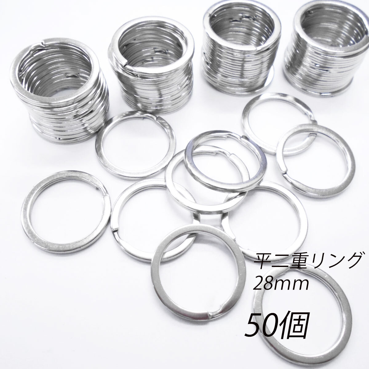 - 二重リング 平型 シルバー 28mm /50個 / 合金 金具 パーツ キーホルダー レザークラフト 材料