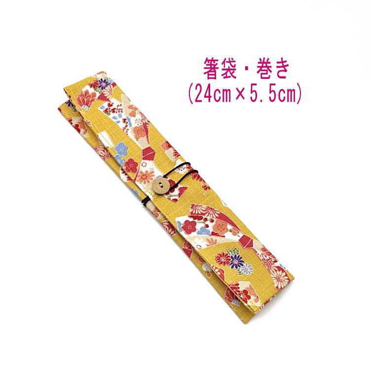 - 箸袋・巻き(24cm×5.5cm)【和柄 花結び柄 イエロー】ドビー織り はし袋 箸入れ 箸ケース マイ箸 和雑貨 和小物 お祝い 蝶結び 花熨斗 菊 梅