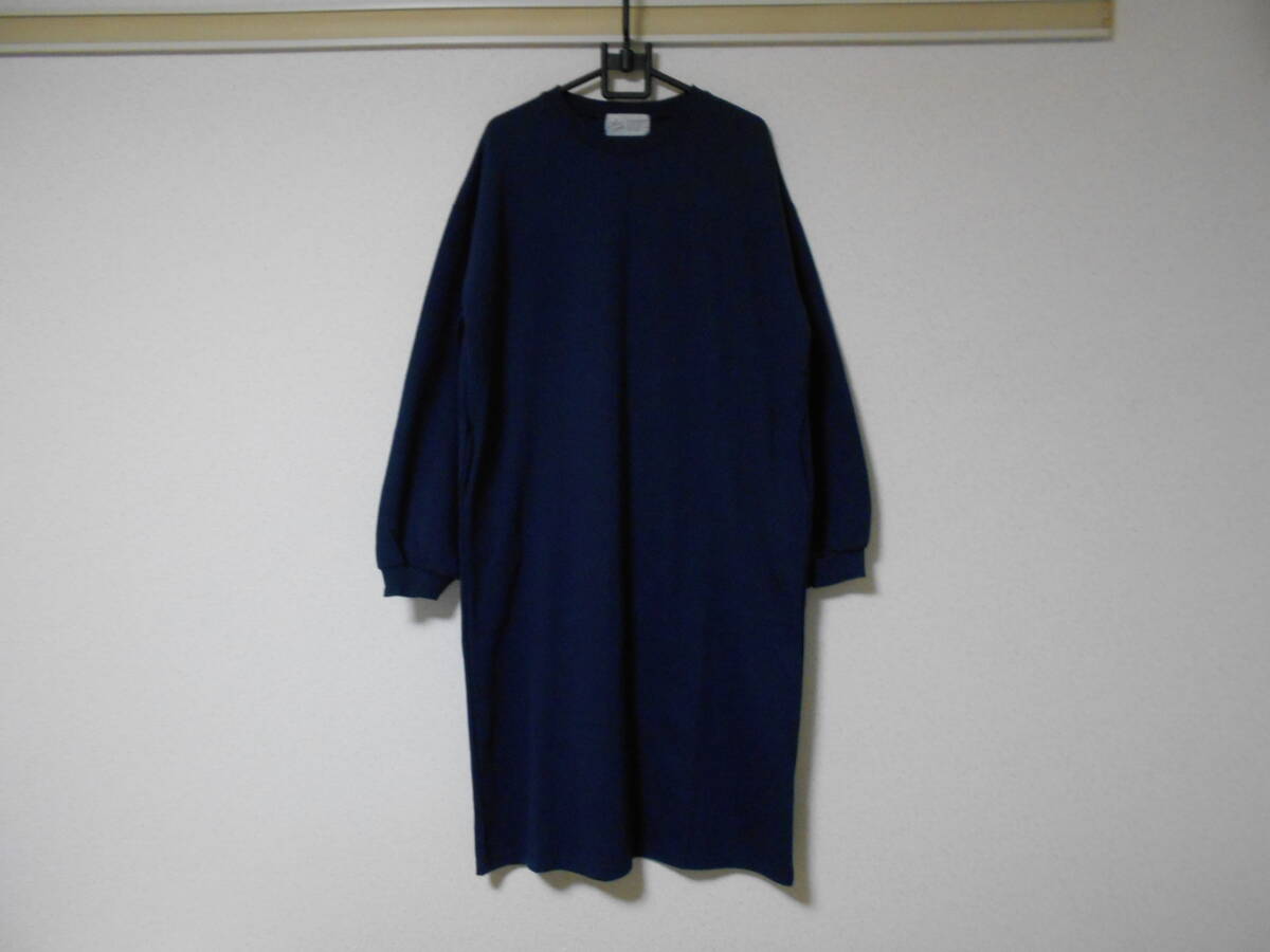 - Chaco closetチャコクローゼット☆ネイビー紺のトレーナー風チュニックワンピース☆ゆったり大きめ♪ロング丈☆ポケット付☆Fサイズ☆美品