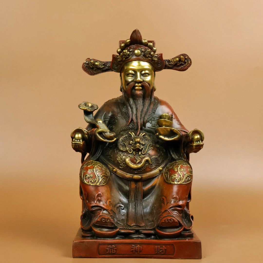 - 『清代・仏教古美術・宮廷御製・古銅流金彫・財神像・置物』極細工・時代物・東洋彫刻・古賞物・中国古玩・中国古美術