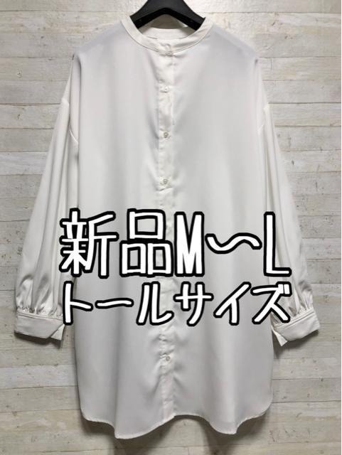 - 新品☆M~Lトール白系♪ノーカラーブラウス長め丈〇B931