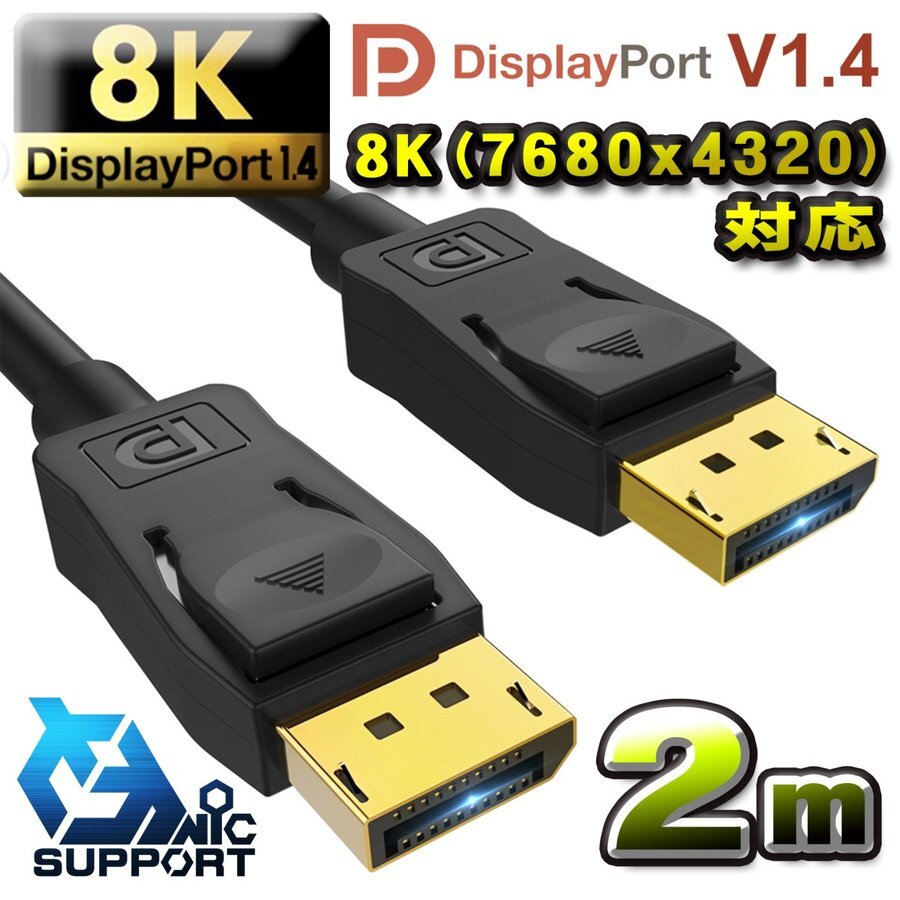 - 8K(7680x4320)対応 Displayport ケーブル 2m DP1.4 ケーブル 対応 Ver1.4 フルハイビジョン 8K/60Hz 4K/120Hz 3D HDR 2メートル
