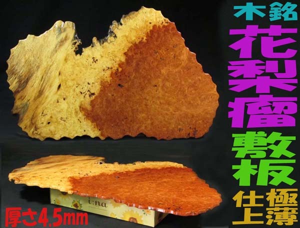 > ★☆伝統の技.銘木.花梨の瘤.敷板・名工による厚み4.5mmの極薄仕上・厚い銘木を何度も削り.反り捻れを無くした究極の一品・無傷・箱無☆★