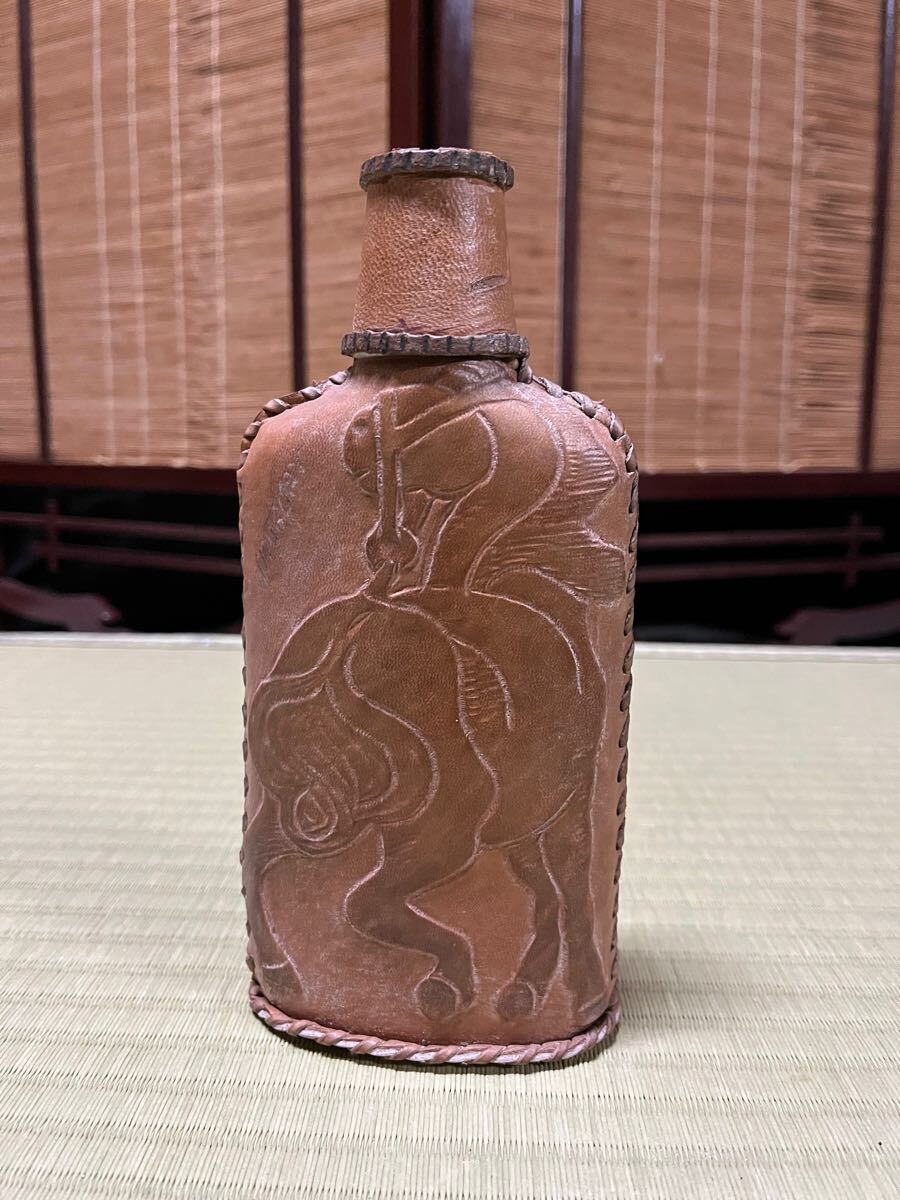 - ウイスキーボトル 馬 革巻き ガラス瓶 コルク ヴィンテージ 酒瓶 蓋付 ウイスキー