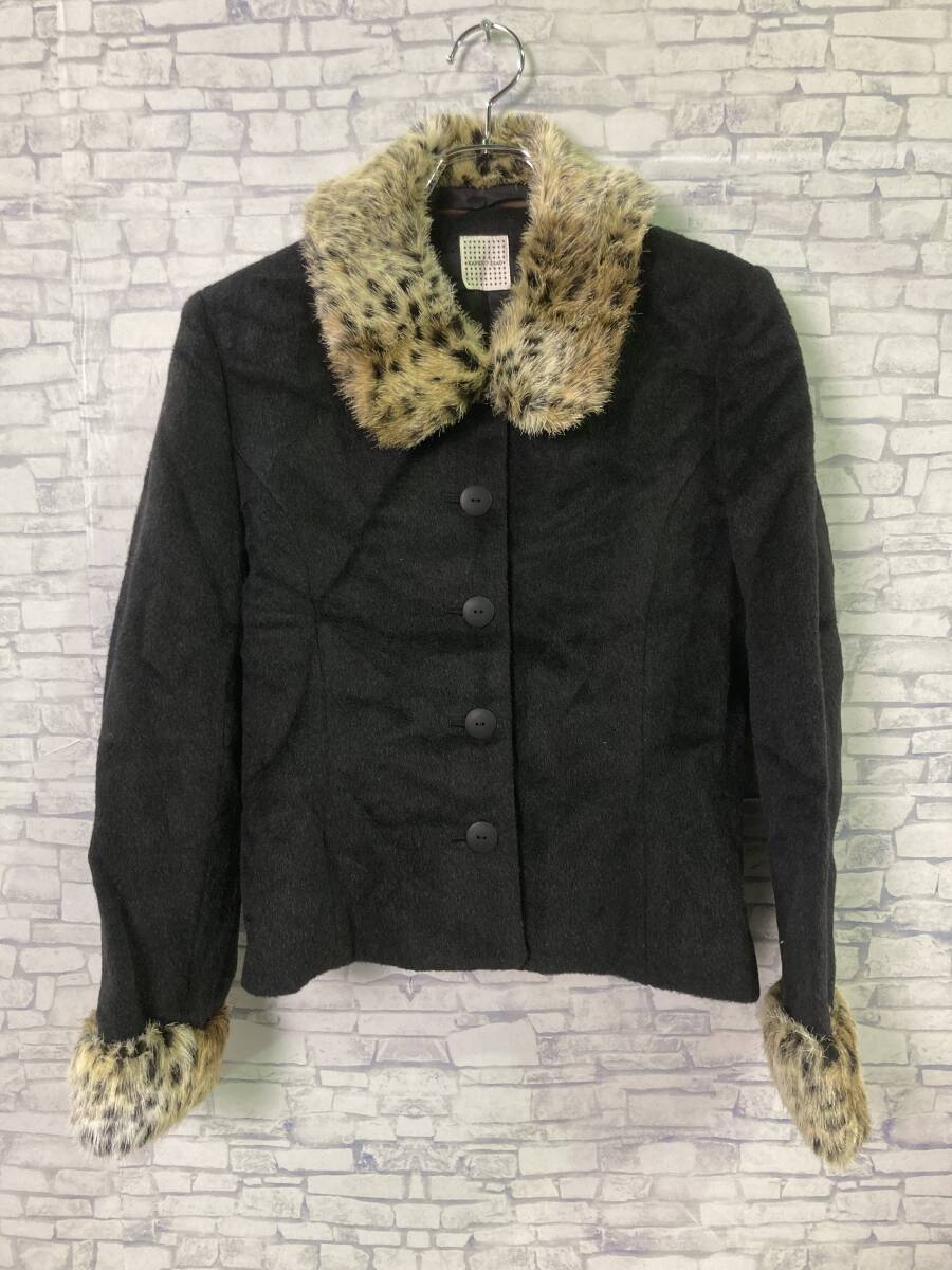 > KANEKO ISAO カネコイサオ ★ 豹柄 ファー付き ジャケット アルパカ混 レディース 冬 レオパード ヒョウ 激安 格安