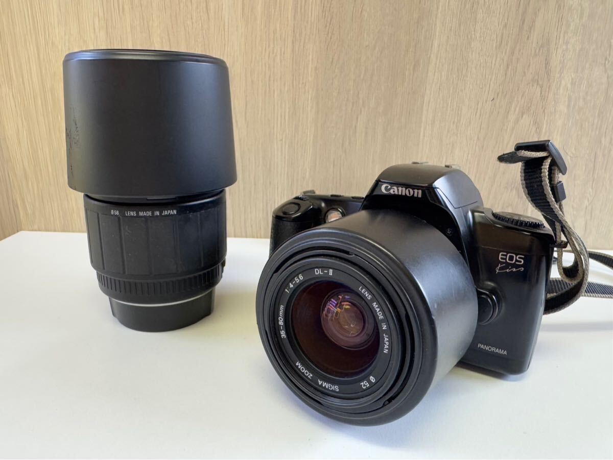 - 【中古品】Canonキヤノン EOS kiss フィルムカメラ & SIGMAシグマ 70-300mm 1:4-5.6DL カメラレンズ セット おまけ 収納バッグ付き 現状品