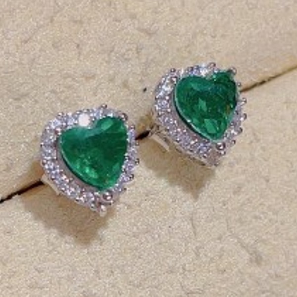 - 《最初の入札者様は開始価格で購入可能》ハート型の925エメラルドシルバーのピアス、女性へのギフト、5x5mm aa