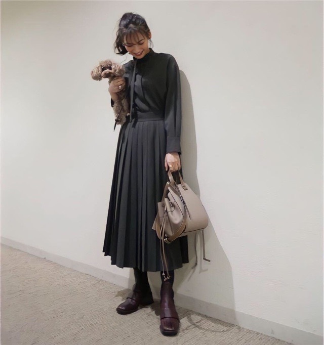 - uncrave アンクレイヴ ウールプリーツスカート◆ロングきれいめ VERY掲載 オンワード トゥモローアローズIENAドレステリア グレー