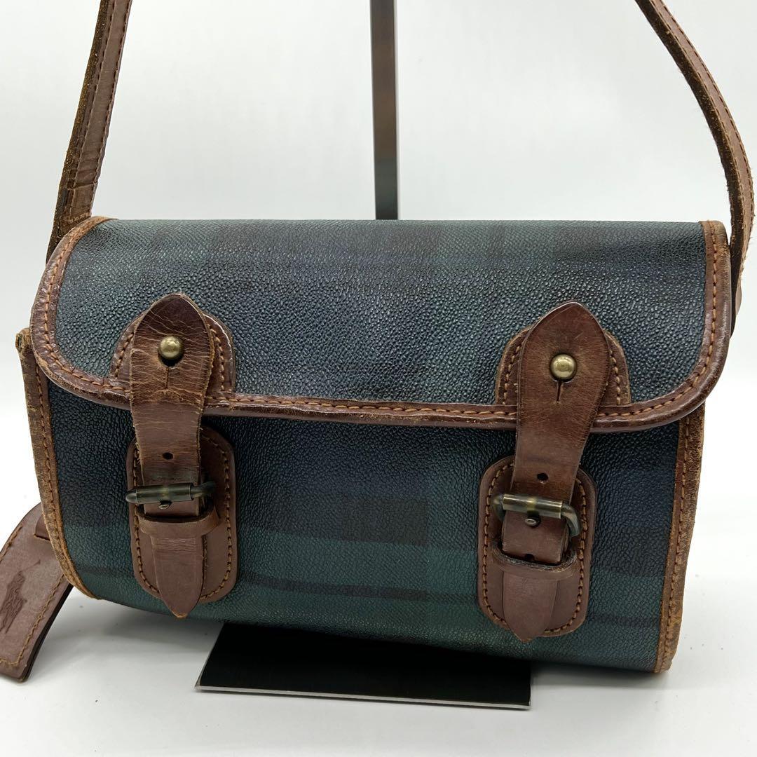 > 【良品】Ralph Lauren ポロラルフローレン ポシェット サコッシュ ショルダーバッグ チェック PVC グリーン メンズ レディース BG001011B
