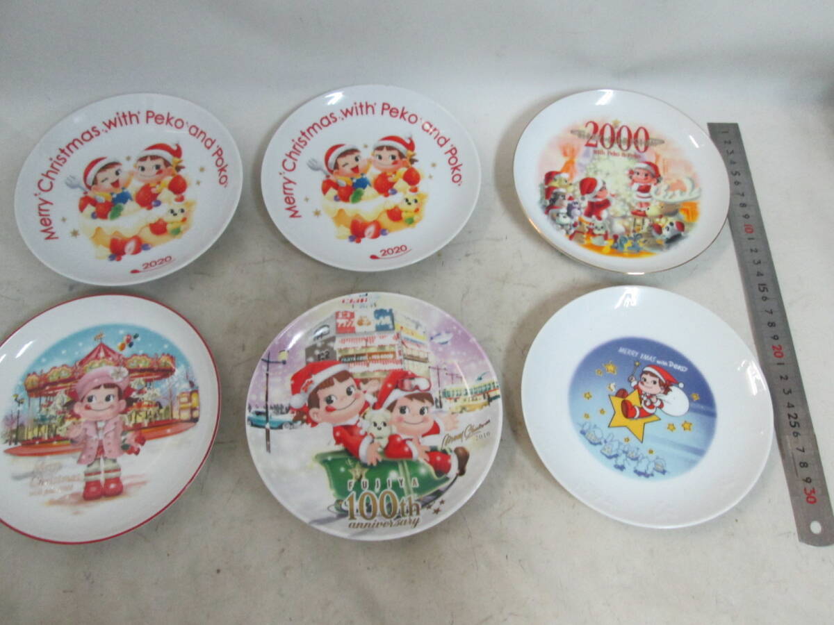 - 不二家 ペコちゃん 陶器 皿 100TH クリスマス 2000年 2020年 6個 未使用か美品