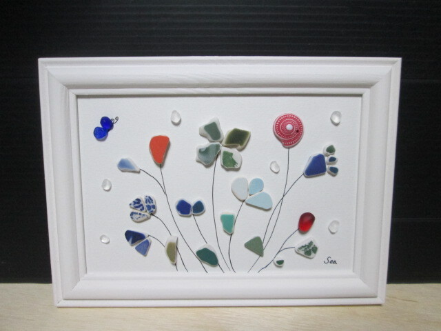 > ★シー陶器 シーグラスアート お花畑 蝶々 ボタニカル インテリア ハンドメイド★