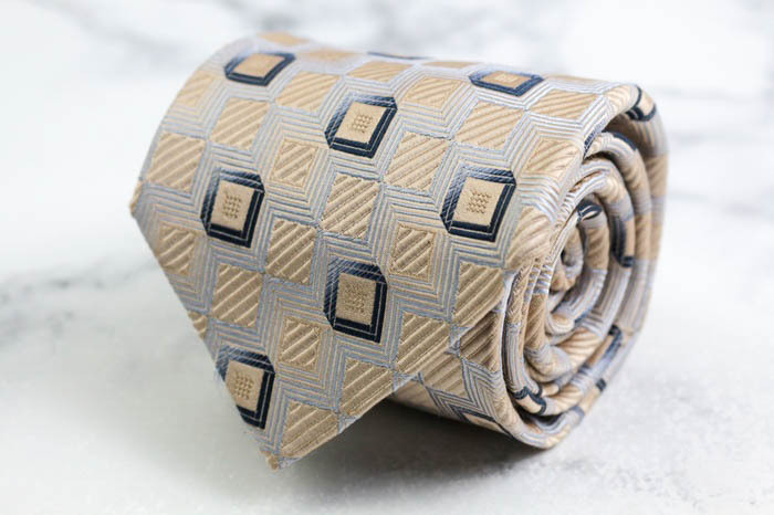 - エルメネジルドゼニア ブランド ネクタイ スクエア柄 シルク コットン PO メンズ ベージュ Ermenegildo Zegna
