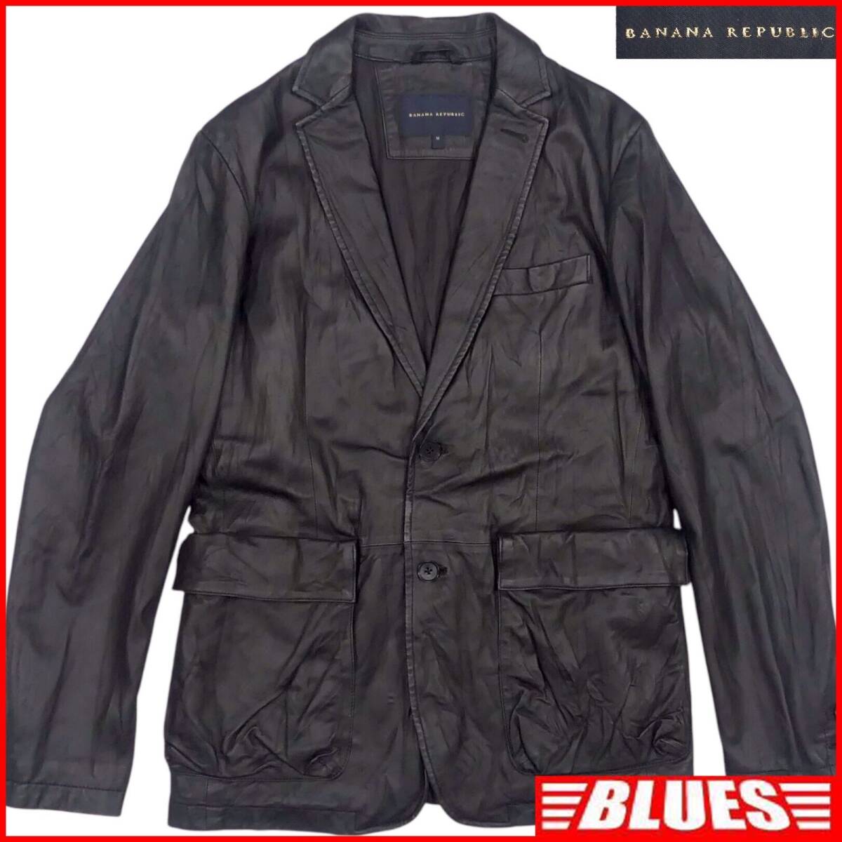 > 即決★BANANA REPUBLIC★メンズ M レザーテーラードジャケット バナナリパブリック 黒 本革 ブレザー 本皮 スーツ 革ジャン 背広