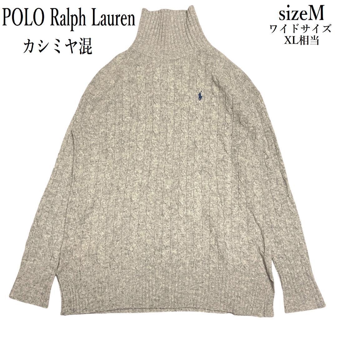 > POLO Ralph Loren ポロ ラルフローレン カシミヤ混 ケーブルニット タートルネック セーター M 大きめのサイズ感 グレー ベージュ