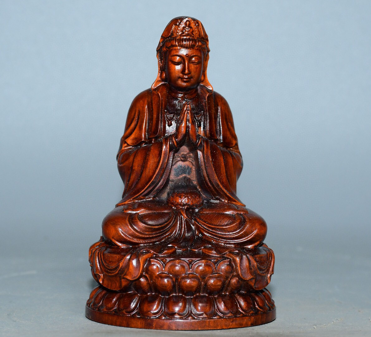 - 【仁】『黄楊木製・細密彫・蓮花觀音像・仏教古美術・供養品』極細工 古賞物 中国古玩 古美術 古美味