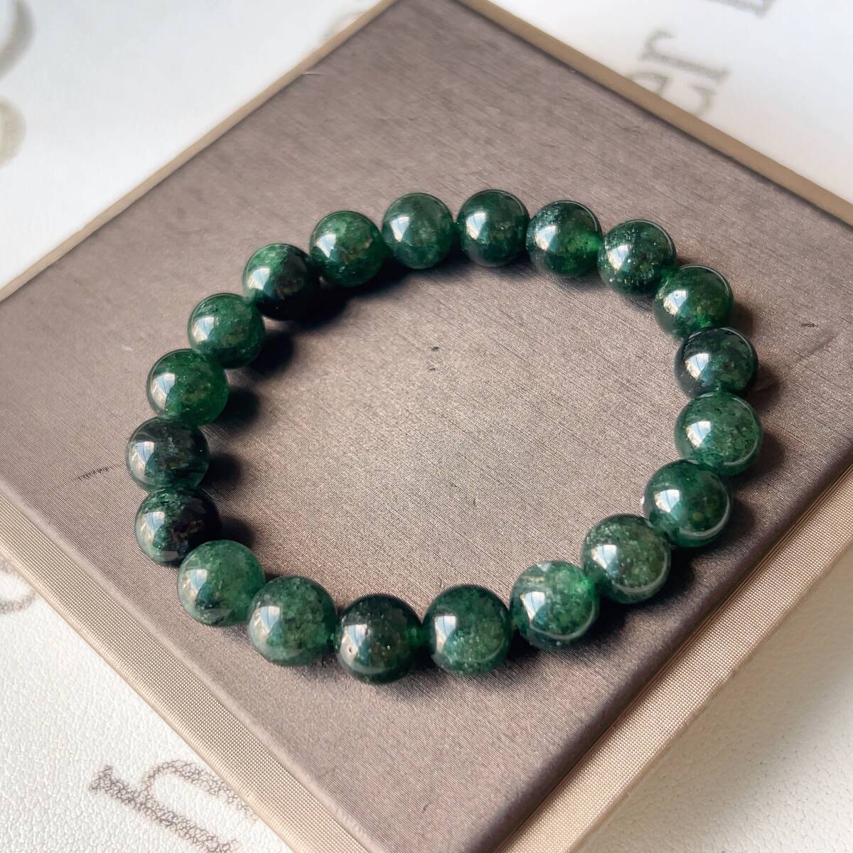 - 色濃いめ◇グリーンストロベリークォーツ◇パワーストーン◇ブレスレット◇天然石◇巾着袋付き◇プレゼントにも034B1126