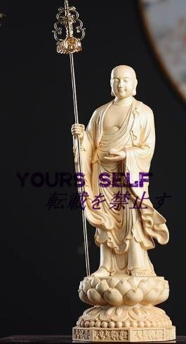 - 木彫り仏像【地蔵菩薩立像】木製 安産祈願 子育ての守護尊 仏間 仏壇 木彫り ぶつぞう (桧木製-高さ30cm)