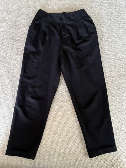 - SIMPLICITEシンプリシテェ タック スラックス ウエストゴムストレートパンツストレッチあり黒ジョイントワーク