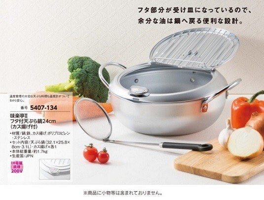 - ☆★☆新品 味楽亭Ⅱ フタ付天ぷら鍋24cm(カス揚げ付) ☆★☆