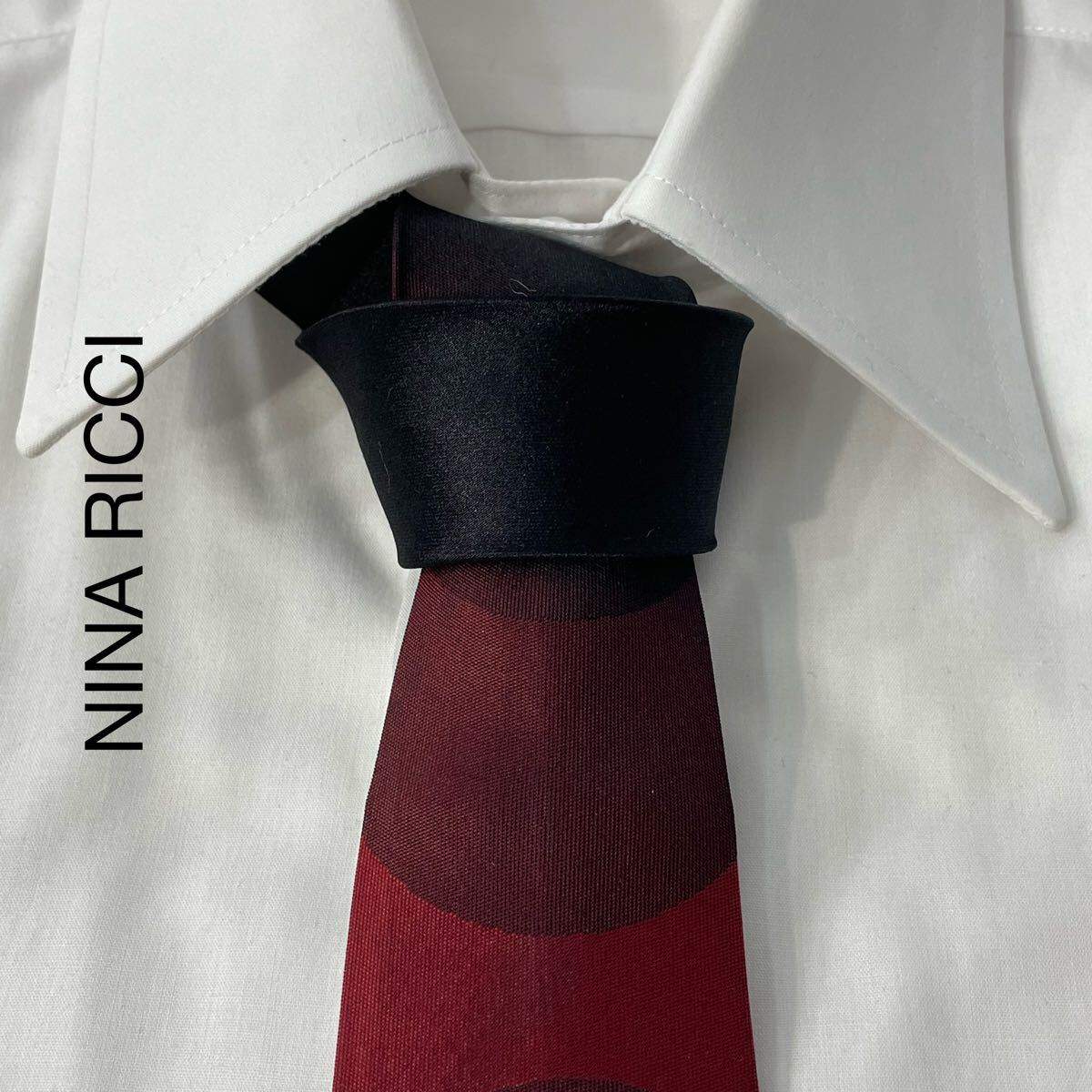 - NINA RICCI ニナリッチ グラデーション デザイン シルク ネクタイ ブラック ワイン TG955