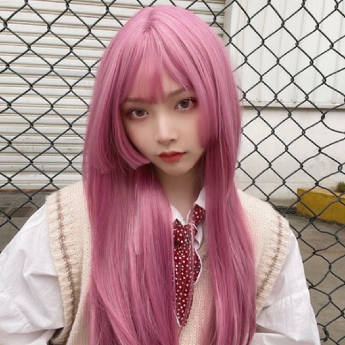 - Mw13◎フルウィッグ ファッションウィッグ ロング ピンクパープル コスプレ かつら