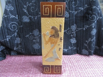 > ★花瓶 エジプトの絵柄 面白い 径7.5cm 高さ27㎝ 汚れあり tm2501-16-9★