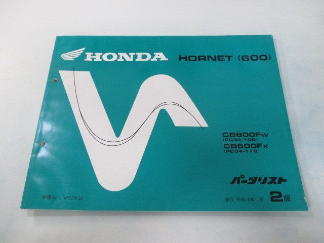 > ホーネット600 パーツリスト 2版 ホンダ 正規 中古 バイク 整備書 CB600F PC34-100 110 EL 車検 パーツカタログ 整備書