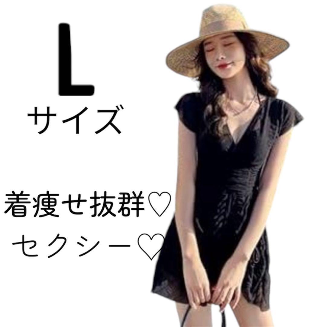 - 水着 レディース ワンピース シースルー 体系カバー 着痩せ ブラック Lサイズ