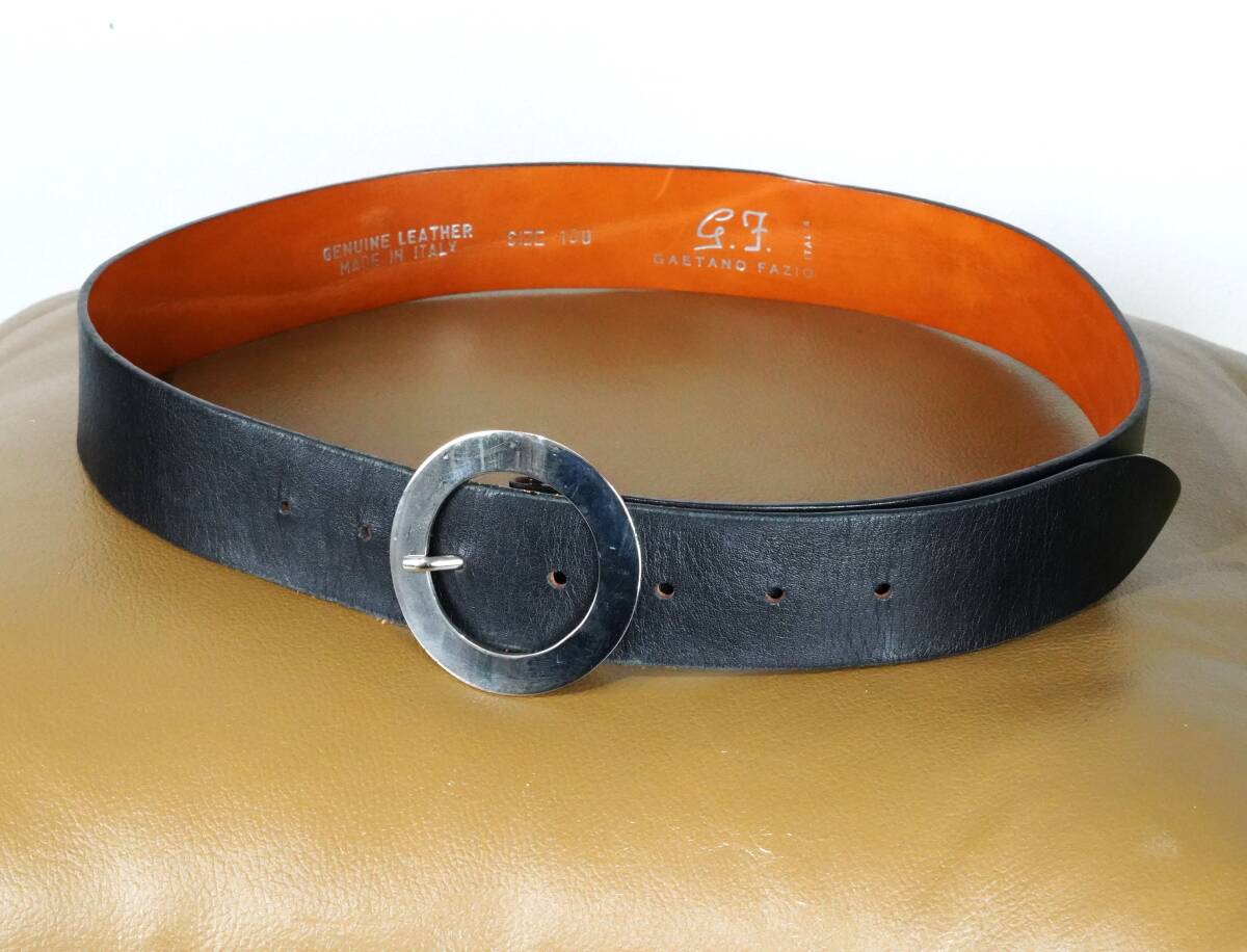 - GAETANO ガエタノ 丸バックル ベルト 黒 レザー 本革