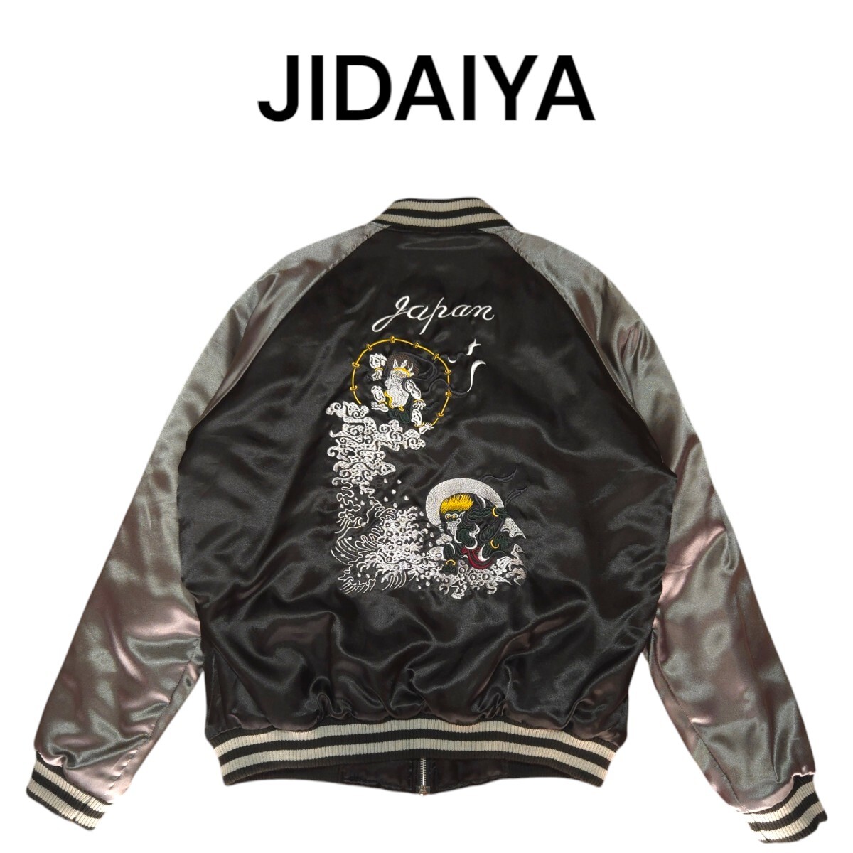- 美品JIDAIYA 風神雷神刺繍 中綿スカジャン ブラックスーベニアジャケット