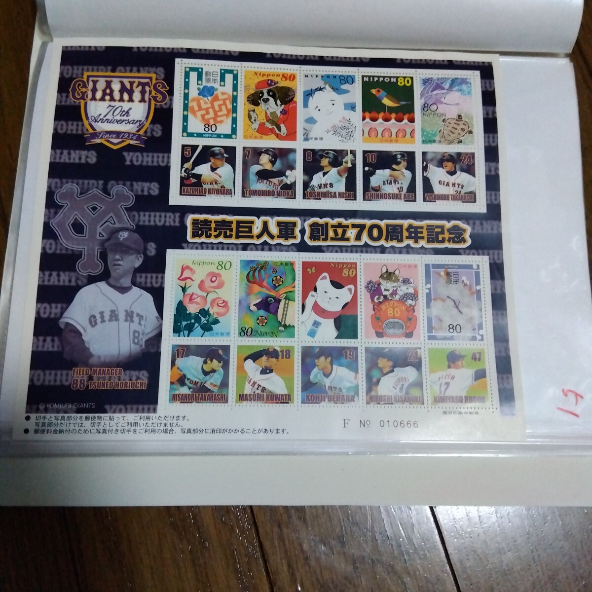 - 未使用切手 読売巨人軍 創立70周年記念80円10枚シート 細かなシワあり