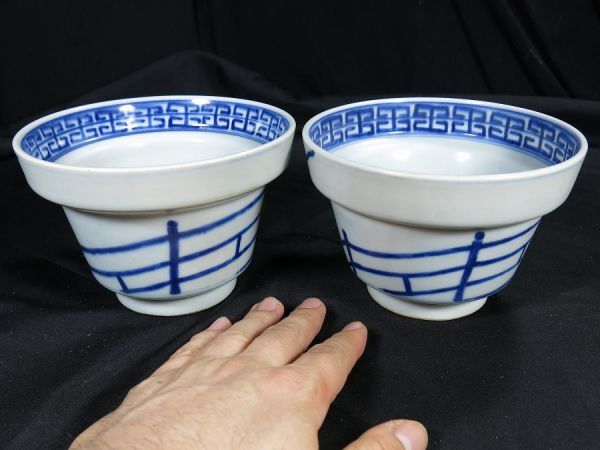 - e 欄干図染付碗2客 五良大甫呉祥瑞造 磁器 /古染付 新渡 有田 細首壺 唐草文 色絵 豆彩 粉彩 白磁 染付 青花 呉須 青磁