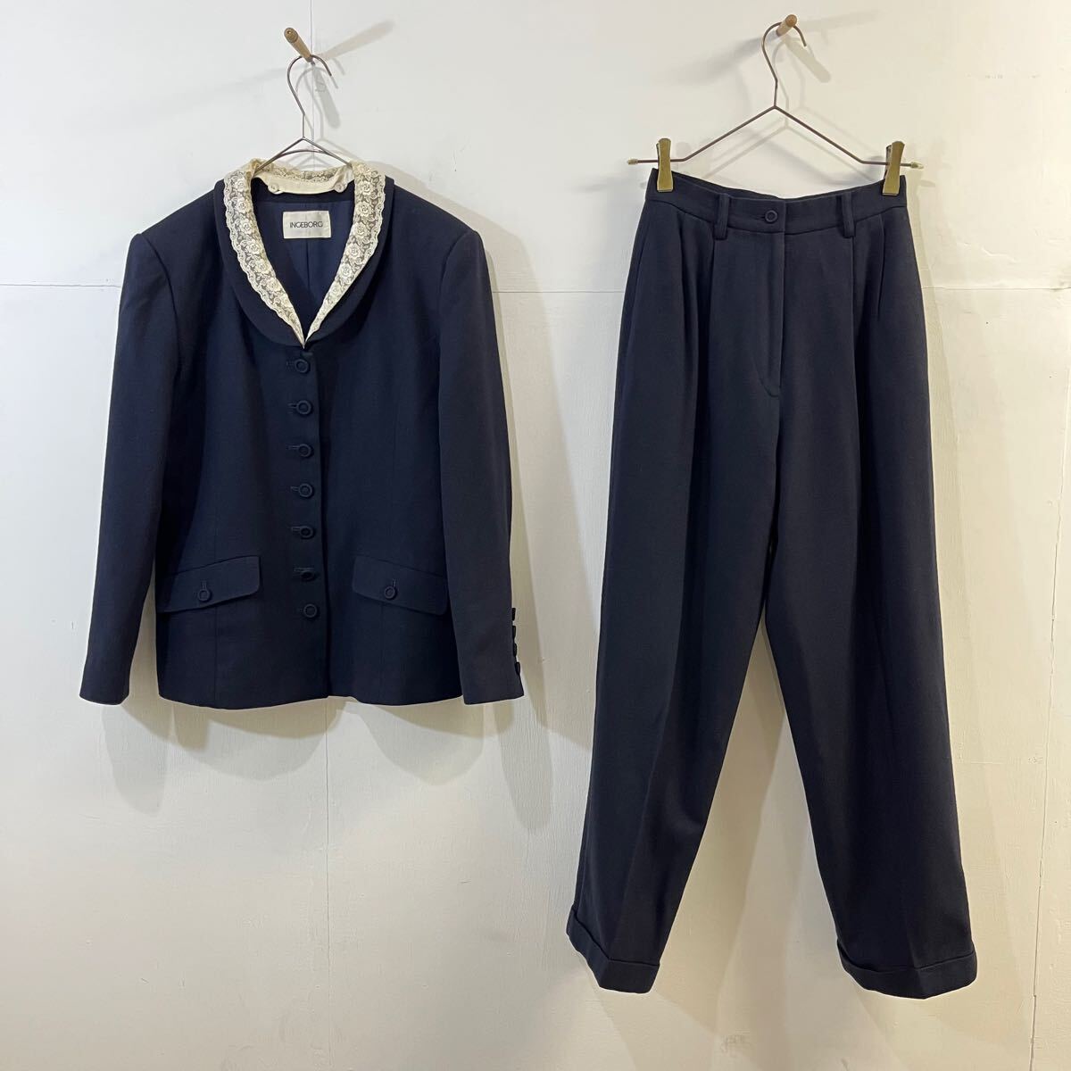> INGEBORG ウールセットアップ デザインジャケット 2タックスラックス レース ピンクハウス カシミヤ混 インゲボルグ【送料一律/同梱可能】Q