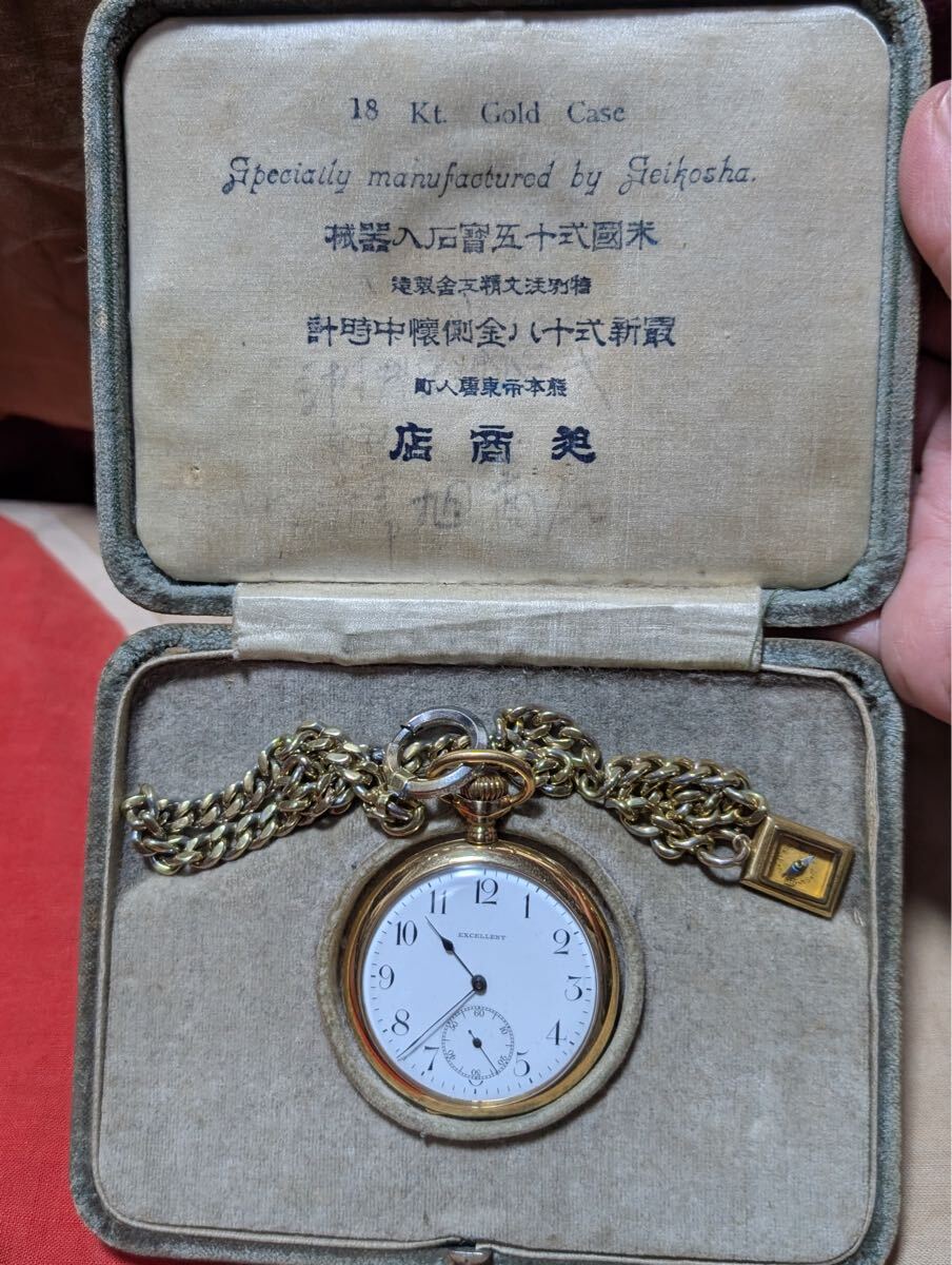- エクセレント 明治後期〜大正初期 18金 箱付 H28.1オーバーホール済 稼働品 本体65g 懐中時計 稼働品