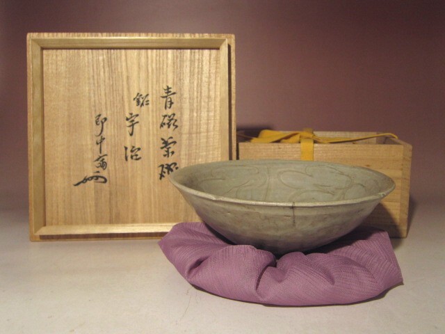 - 時代 青磁茶碗【宇治】★表千家十三代即中斎花押★a370