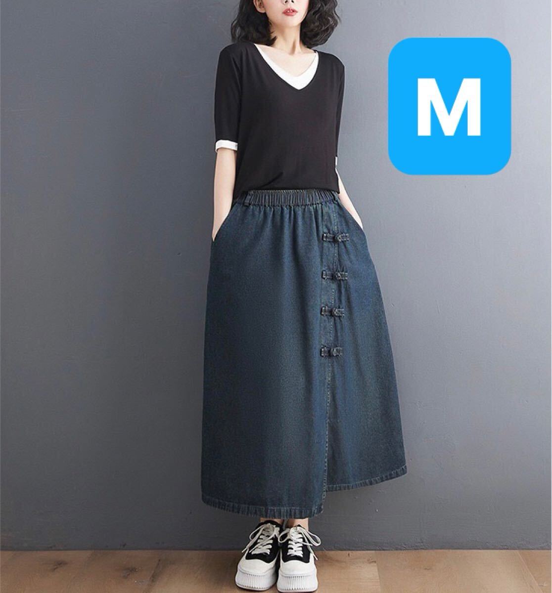 - スカート 膝丈スカート デニムスカート ドレープスカート スリット ワイドスカート 大人気 推し マタニティ オルチャン ベストチョイス M