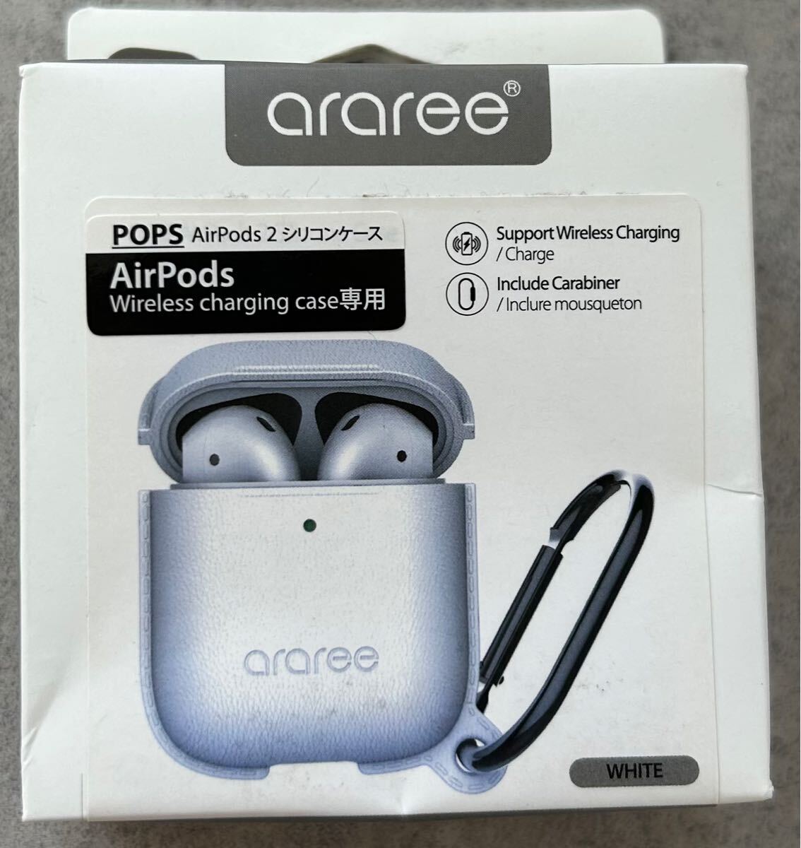 - 【送料無料/未開封】AirPods 2 カラビナ付きシリコンケース POPS Wireless Charging Case専用 AR16461AP(4589753054615/ホワイト)