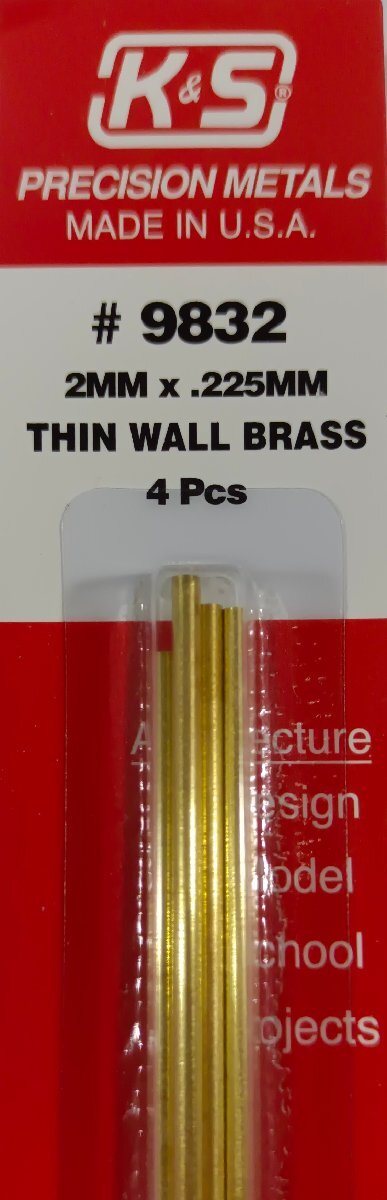 - 真鍮パイプ 外径2.0mm(肉厚0.225mm)×約30.48cm 4本入り K&Sエンジニアリング