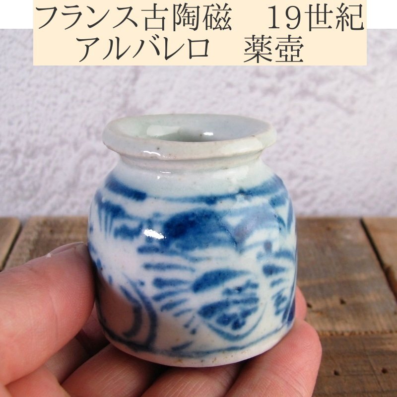 > フランス古陶磁 アルバレロ 薬壺 高さ:4.5cm 19世紀/デルフトマヨリカ/24L073