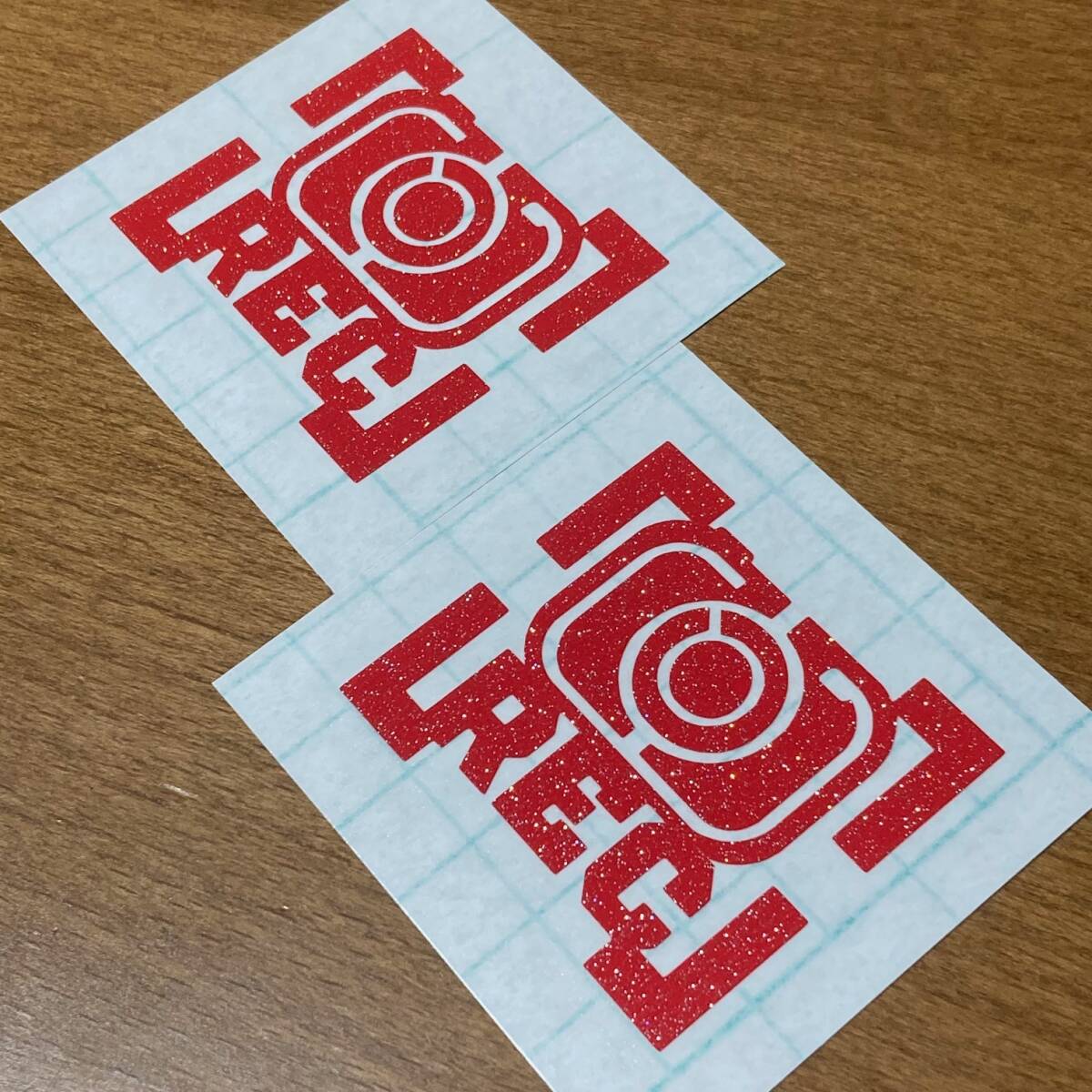 > 限定カラー レッドラメ ワンポイント シンプル カメラ REC 四角デザイン ver.2 カッティングステッカー 2枚1セット
