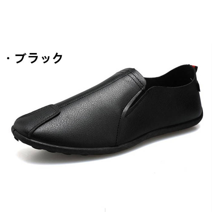 > スリッポン モカシン メンズ靴 PU革 レザーシューズ 紳士靴 革靴 カジュアルシューズ モカシンシューズ Zxe0402 ブラック 27.0cm