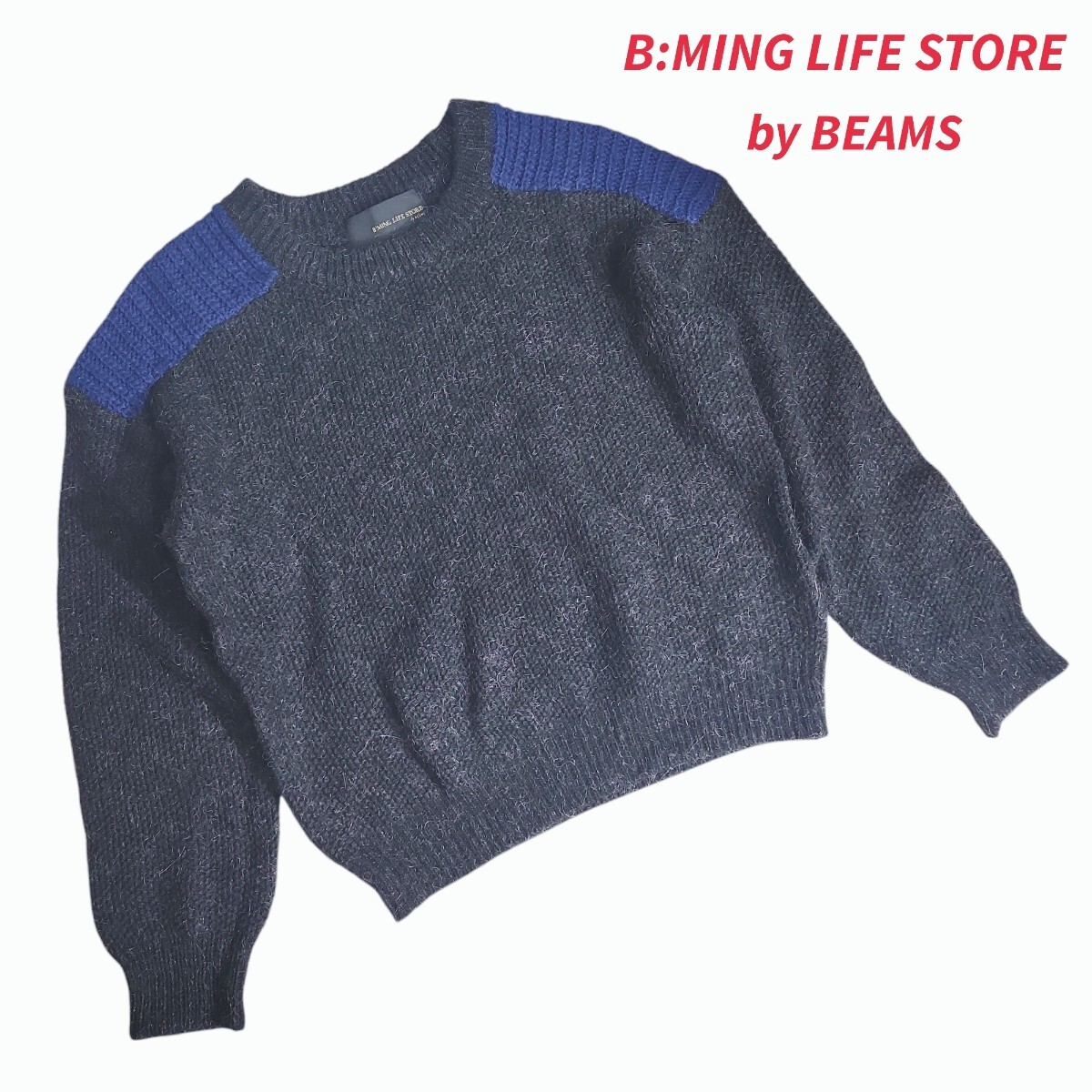 > B:MING LIFE STORE by BEAMS モヘア混 バイカラー ニット やや軽量 セーター 黒&青 サイズ表記なし ドロップショルダー 68451
