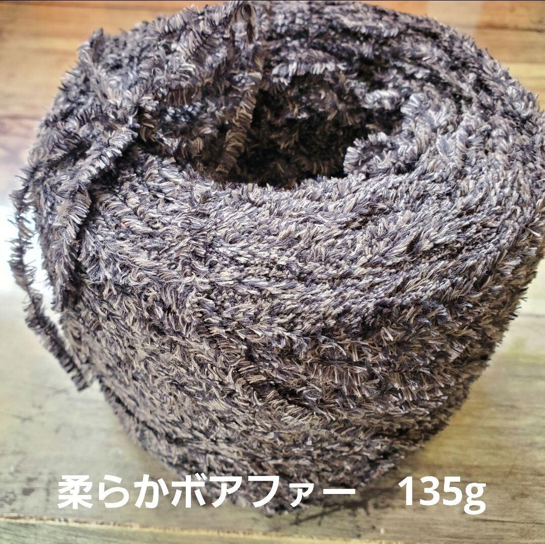 - 柔らかいボアファー毛糸 135g グレー系 編み物 ファンシーヤーン ファーヤーン ニット