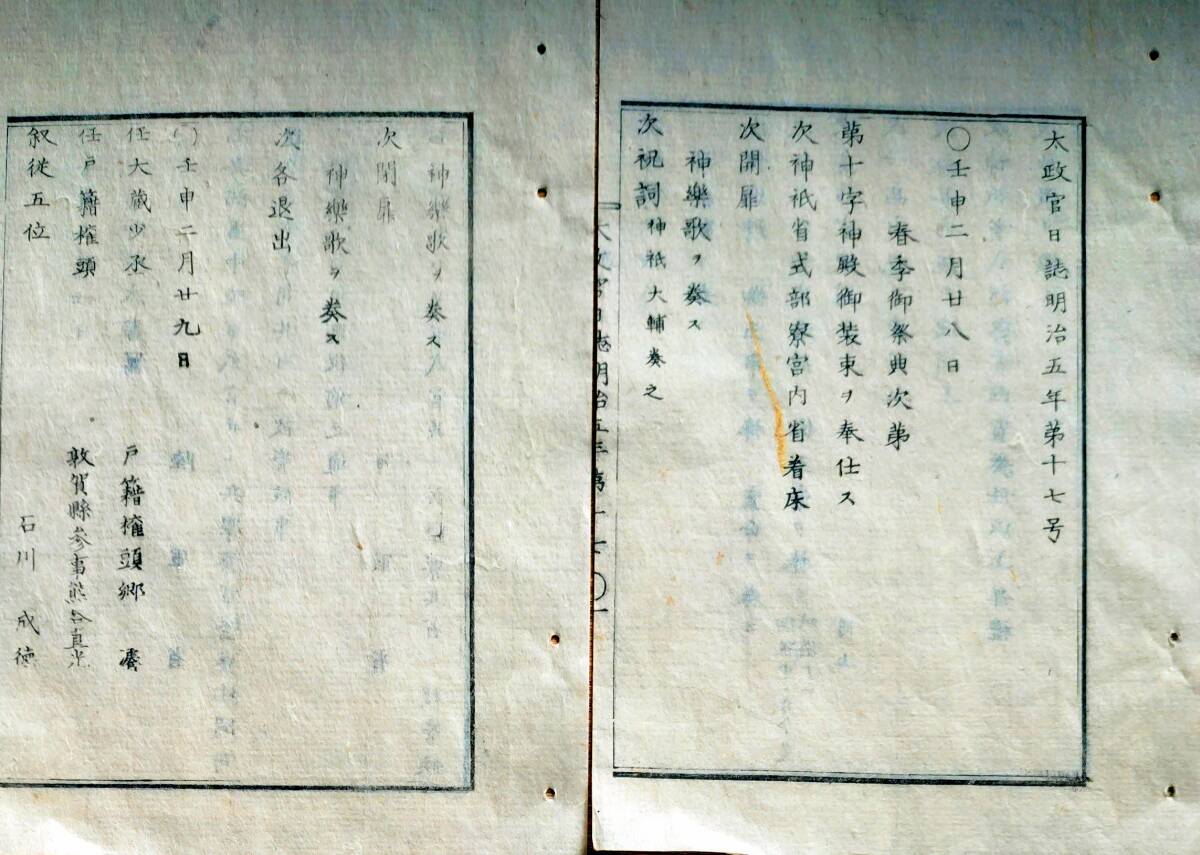 - f25012517〇太政官日誌 明治5年壬申 第17号〇春季御祭典次第 神楽歌〇和本古書古文書