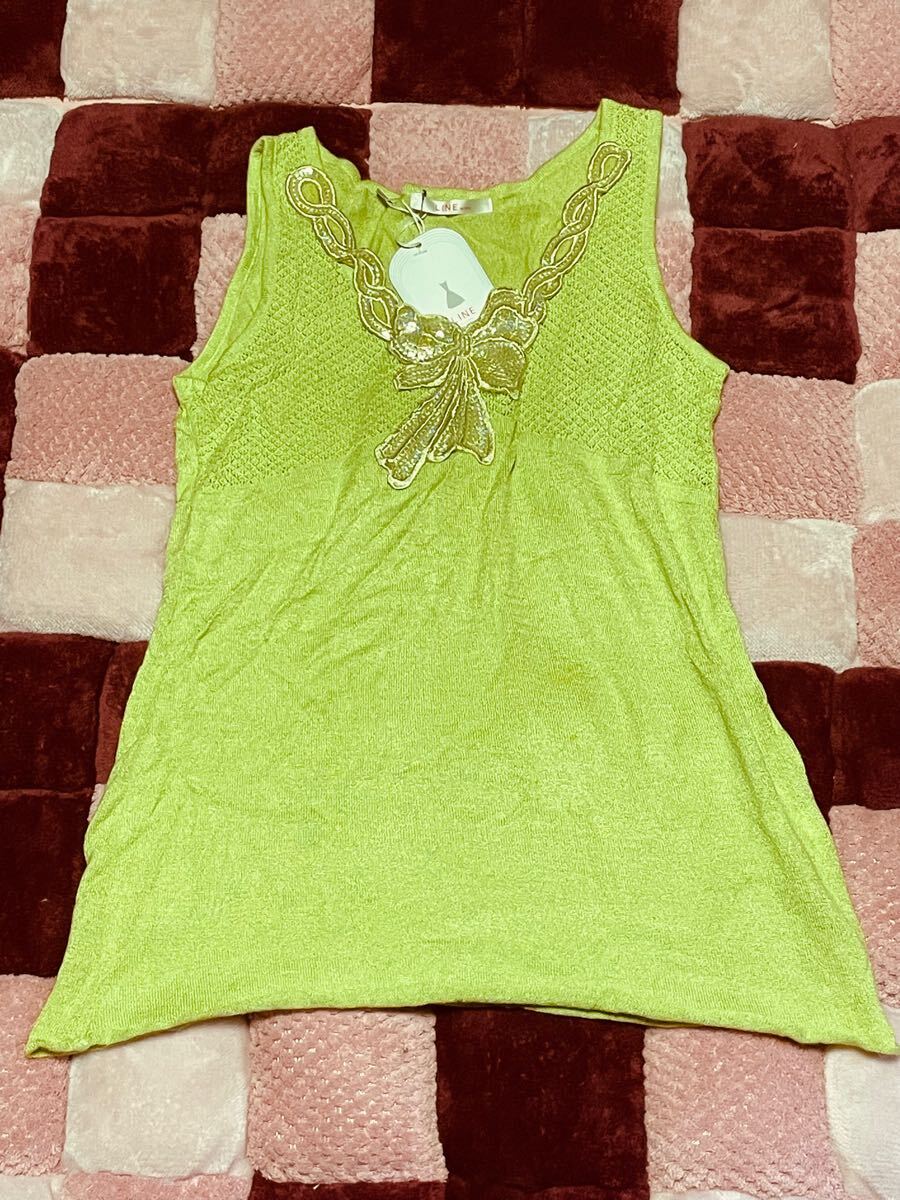 - LINE リボンが可愛いタンクトップ 黄緑 90%オフ価格